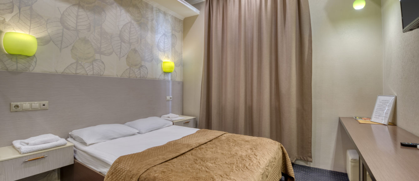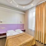 Завтрак (250 руб.)Просторные номера с широкими двуспальными кроватями. В каждом номере: отдельный санузел с душевой кабиной, вместительный шкаф для одежды, стол для работы, большой LCD-телевизор, холодильник, чайник и чайный набор. Халаты выдаются бесплатно. Размер кровати 190х200 см. В номере: кондиционер, халаты, полотенца, тапочки, фен, шампунь, мыло, лосьон, душ/ванна, гигиенический душ, минибар, чайная станция, ТВ, Wi-Fi.